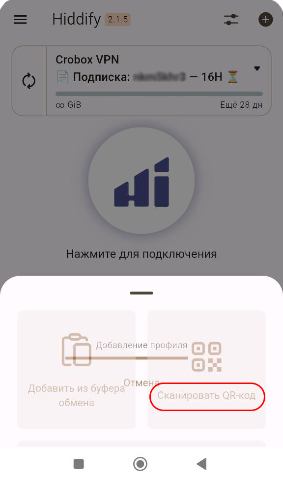 Установка ключа VPN в автоматическом режиме через меню нашего бота работает только при установке приложения Hiddify